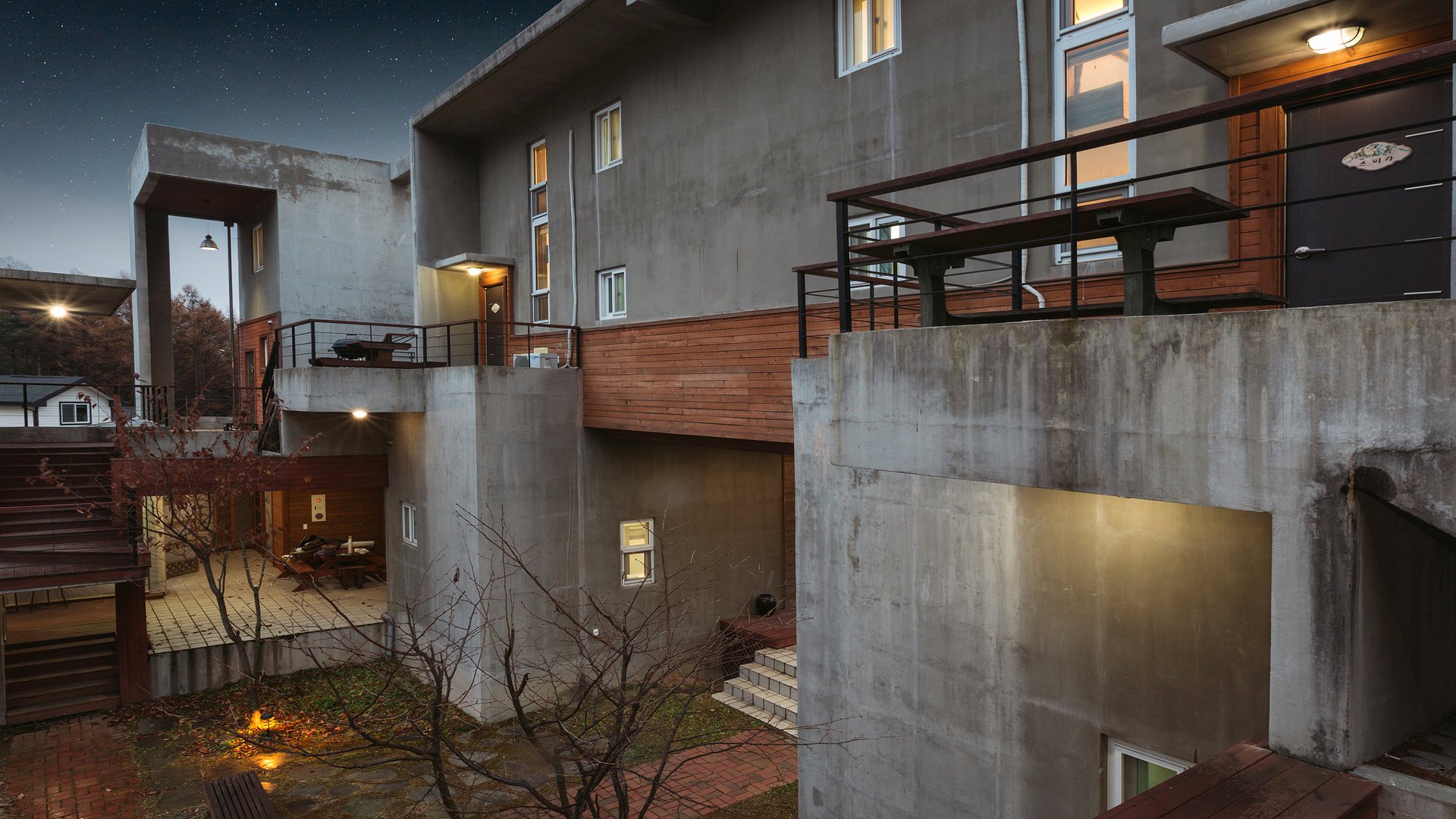 6. CU편의점에서 우회전해서10M 정도 직진후 11시방향 , 기숙사, 청수휴양원을 차례로 지나면 하늘닿은펜션이 보입니다.